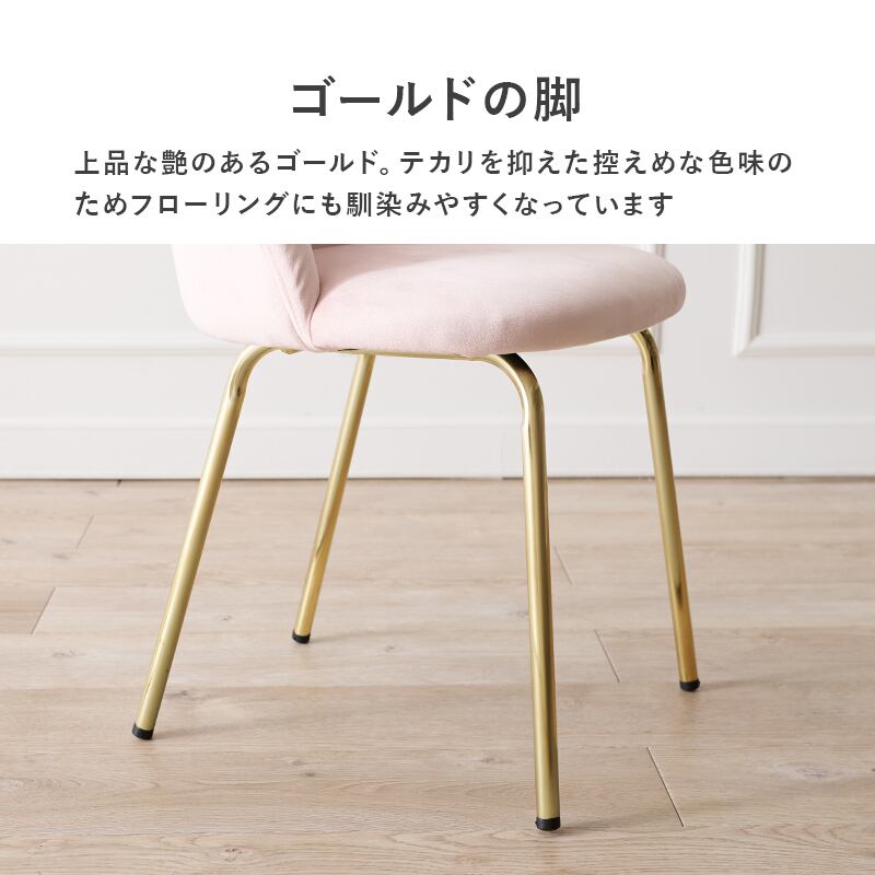 [幅47cm] チェア ベロア調生地 ゴールド脚 背もたれカーブ フェミニン おしゃれ 8601