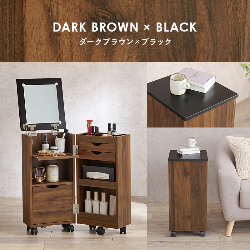 [幅30.5cm] コンパクトコスメワゴン 大容量収納 キャスター付 ドレッサー風 8601