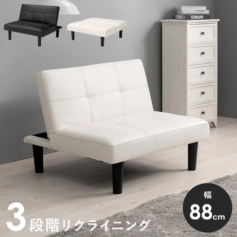 [幅88cm] コンパクトソファ 肘なし 背もたれ3段階リクライニング 合皮 8601