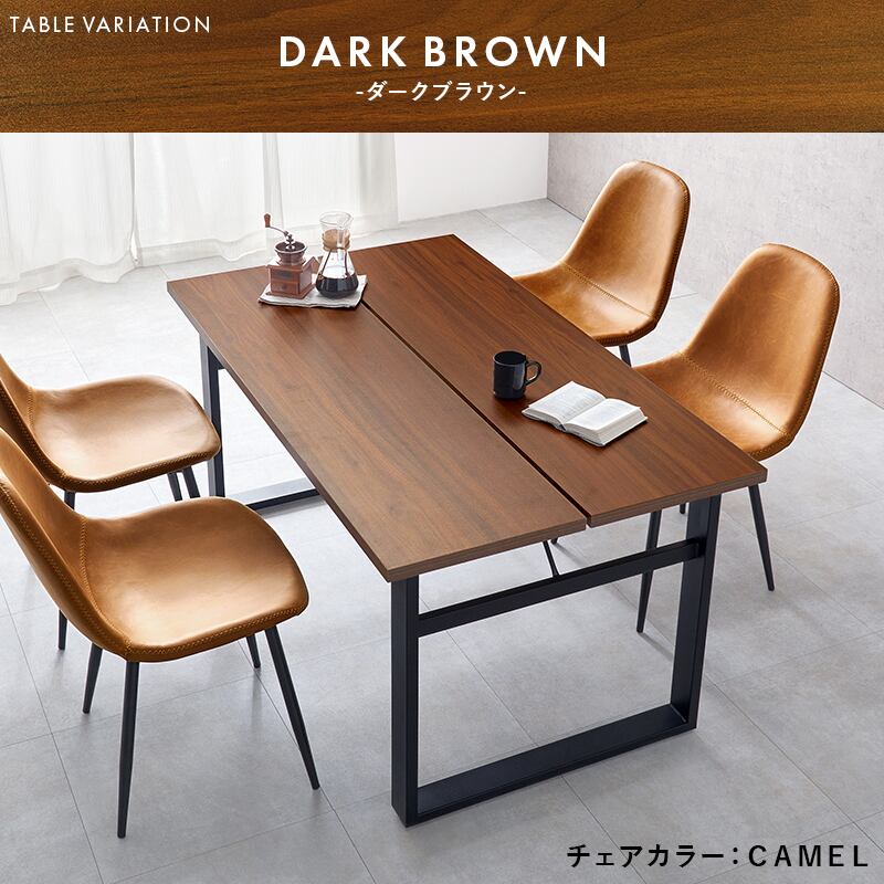 スタイリッシュなデザインのテーブルにヴィンテージ調の合成皮革を使用したチェアを合わせたダイニングセット