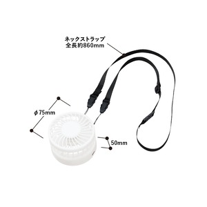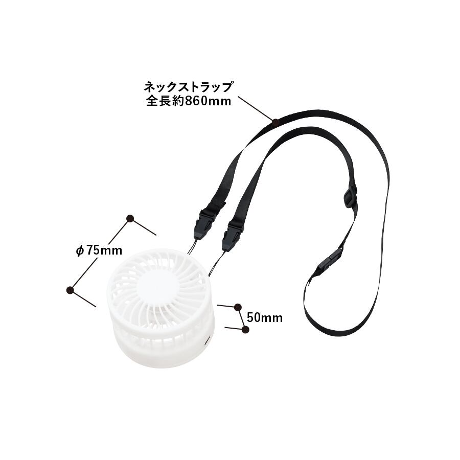 付属のネックストラップをつければ首掛けができるハンズフリーファンに、