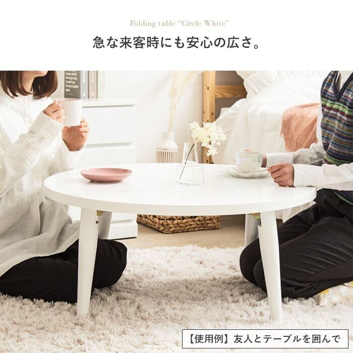 [幅80cm] 折りたたみテーブル Circle White 円形 ローテーブル センターテーブル 木製 おしゃれ 北欧 韓国 かわいい 1人暮らし 2301