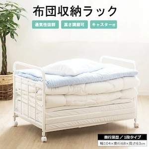[1段 奥行深型] 布団収納ラック 大容量 キャスター付き 省スペース 通気性 カビ対策 2301