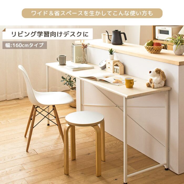 横長のサイズを生かして、お子様が2人並んで勉強机にしたり、他のサイズと組み合わせてL字型レイアウトして使用するなど、様々なシーンで活躍します。