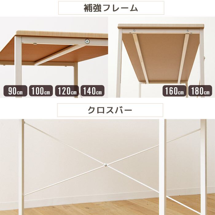 コンパクトに使いたい方、ゆったり広々とした作業スペースが欲しい方、お客様のご要望に応じて選べる横幅90cm/100cm/120cm/140cm/160cm/180cmの6サイズをラインナップ。