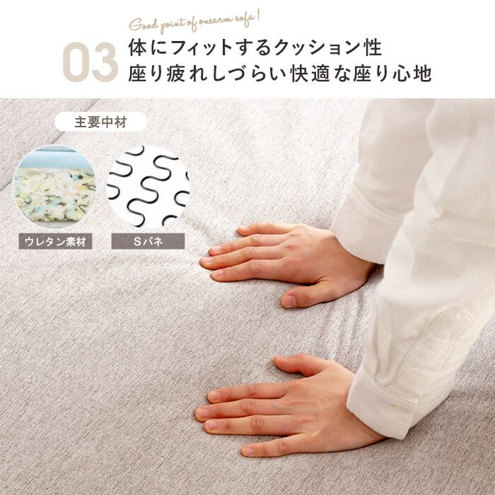 中材:天然木、ウレタン、ポリエステル綿、ウェービングテープ、Sバネ