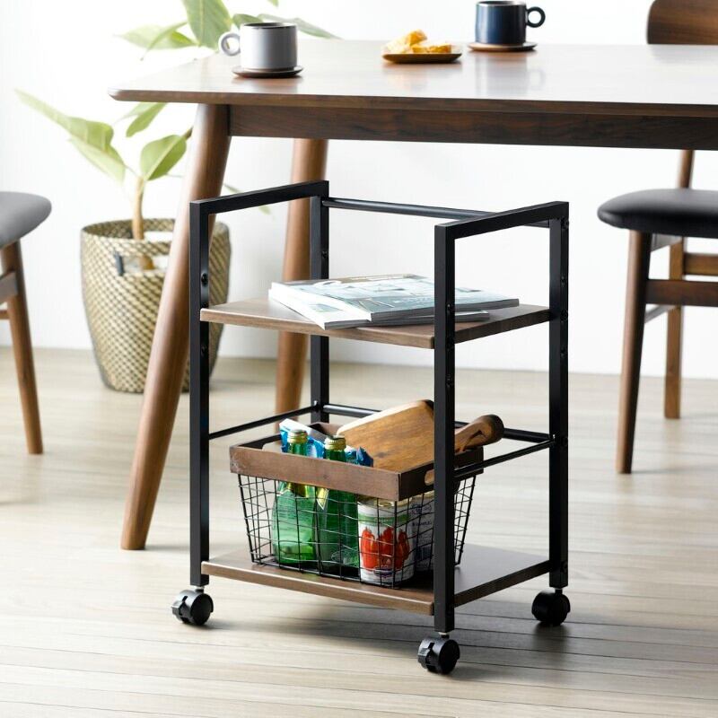 キャスター付きで、どこへでもスイスイ移動できる便利なワゴンです。