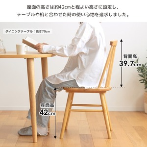 天然木製のウィンザーチェア、英国伝統のデザインを採用。軽やかで丸みを帯びた優しいフォルム、背もたれが体にフィットし、長時間座っても疲れにくい快適な座り心地です。座面は広めで、座ぐりが施されており、体格の大きな男性にも適しています。座面高42cmで、ダイニングテーブルやデスクにぴったり。耐水性ラッカー塗装でお手入れ簡単、足裏フェルト付きで床を傷つけません。耐荷重100kgで高い耐久性を誇ります。