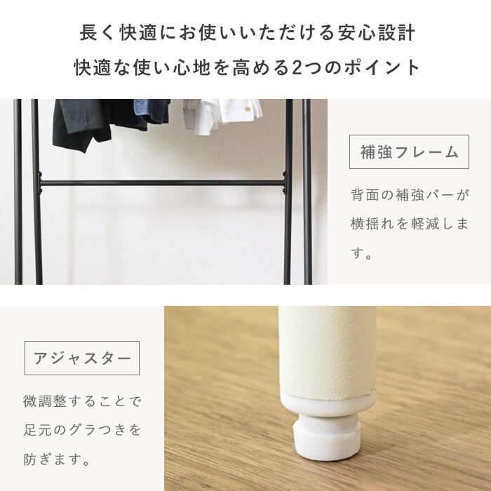 素材 (フレーム)スチール、粉体塗装(ハンガーバー)天然木、塗装