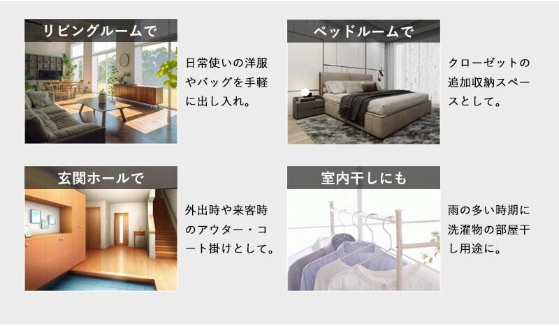 「今日何を着て行こうかな?」と、毎日のコーディネート選びをお洒落に楽しめるハンガーラック。お気に入りの洋服や小物を素敵にディスプレイしながら、収納できるシンプルで洗練されたデザインです。どんなお部屋にも馴染みやすいカラーで、インテリアにもぴったり。お洒落な空間で、毎日のスタイリングがもっと楽しくなります。