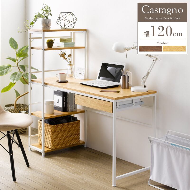 他社にないデザインの追求、そして使い勝手にこだわり作り上げた、当社オリジナルラック付きデスク「カスターノ」。