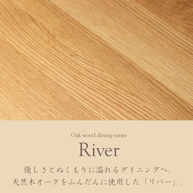 ぬくもりのある木の暮らし 天然木オークを使用した、温かみのあるダイニング空間。 「リバー」ダイニング家具シリーズは、天然木オーク材をふんだんに使用し、ぬくもり溢れるデザインで、 ダイニング空間を優しく包み込みます。美しい木目のダイニングテーブルや、木肌の温もりが伝わるチェアなど、 豊富なバリエーションの組み合わせで、貴方の暮らしにぴったりのシーンを演出。 飽きのこないシンプルなデザインと、使い込むほどに味わいが深まる無垢材の風合いが魅力で、 貴方やご家族と共に長い時間を過ごせるダイニング家具です。 柔らかみのあるダイニングチェア 背もたれや座面に丸みを持たせた柔らかなフォルムが特徴のダイニングチェア。 天然木オーク材を全体に使用し、どっしりとした安定感のある立ち姿が魅力です。 まるで切り株に座っているかのような感覚で、素朴で温かな印象を与えます。 ※チェアは2脚セットでの販売です。