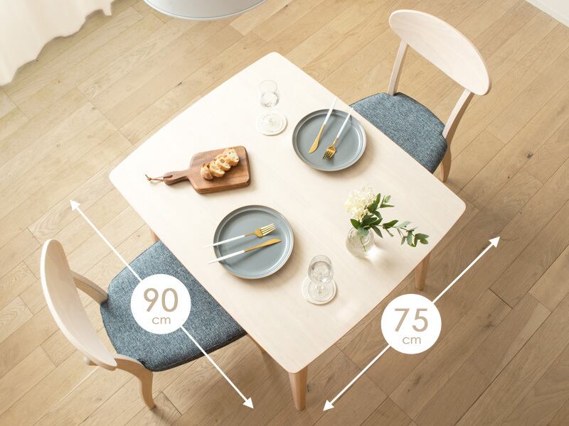 [幅90cm] 単品ダイニングテーブル 2人掛け 天然木 長方形 北欧 おしゃれ 2301