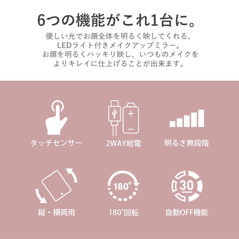 LEDライトメイクアップミラー ライト付き 卓上ミラー タッチパネル 明るさ調節 角度調節 シンプル コンパクト 充電式 コードレス おしゃれ 2301