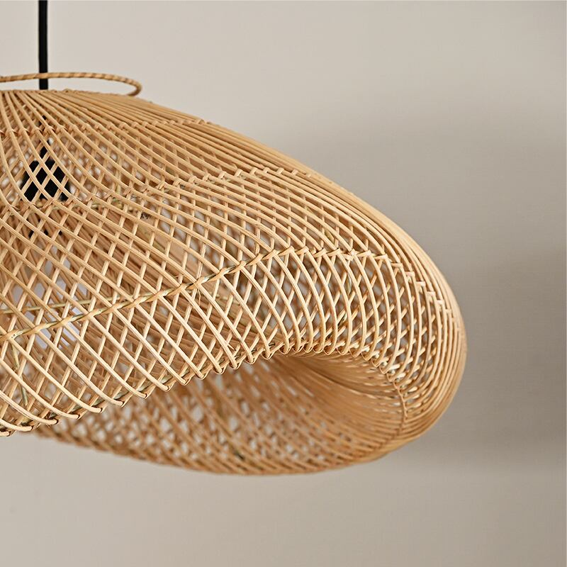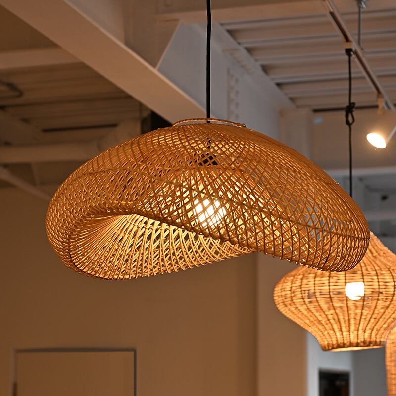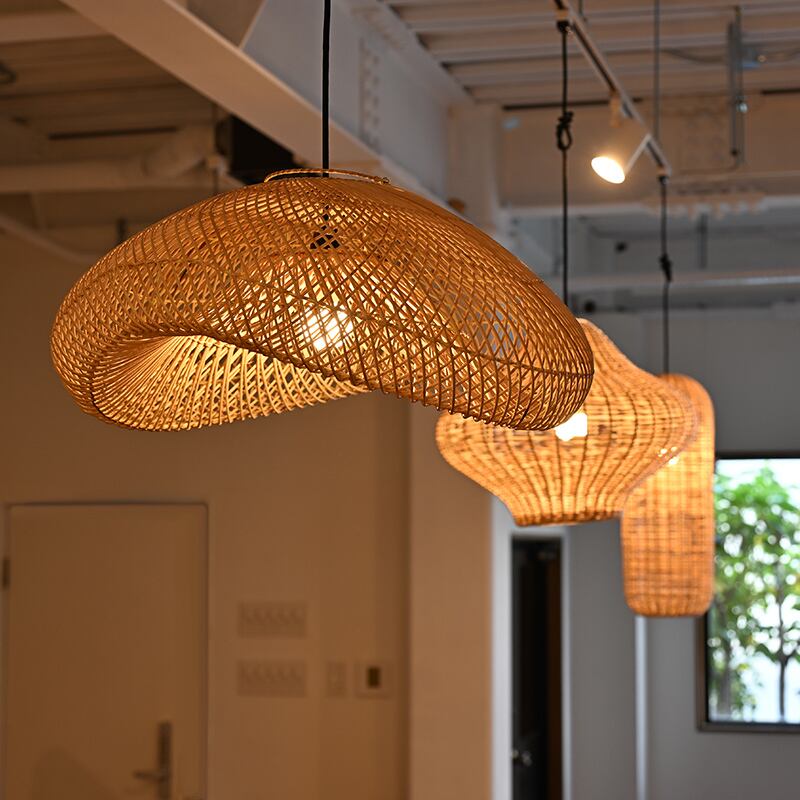 天然素材のラタンで作られたランプシェードは、編み目が通気性を確保し、光を柔らかく拡散させるため、優しい明かりを楽しむことができます。