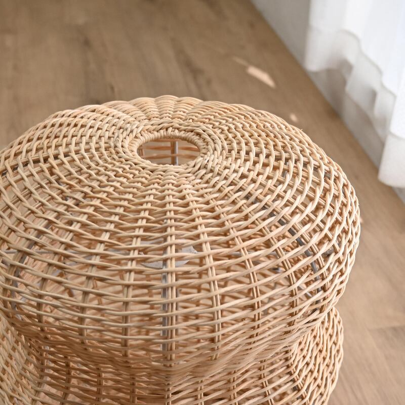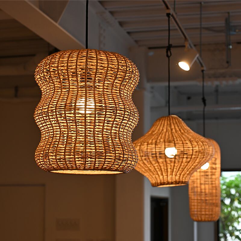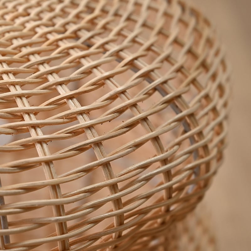 天然素材のラタンで作られたランプシェードは、編み目が通気性を確保し、光を柔らかく拡散させるため、優しい明かりを楽しむことができます。