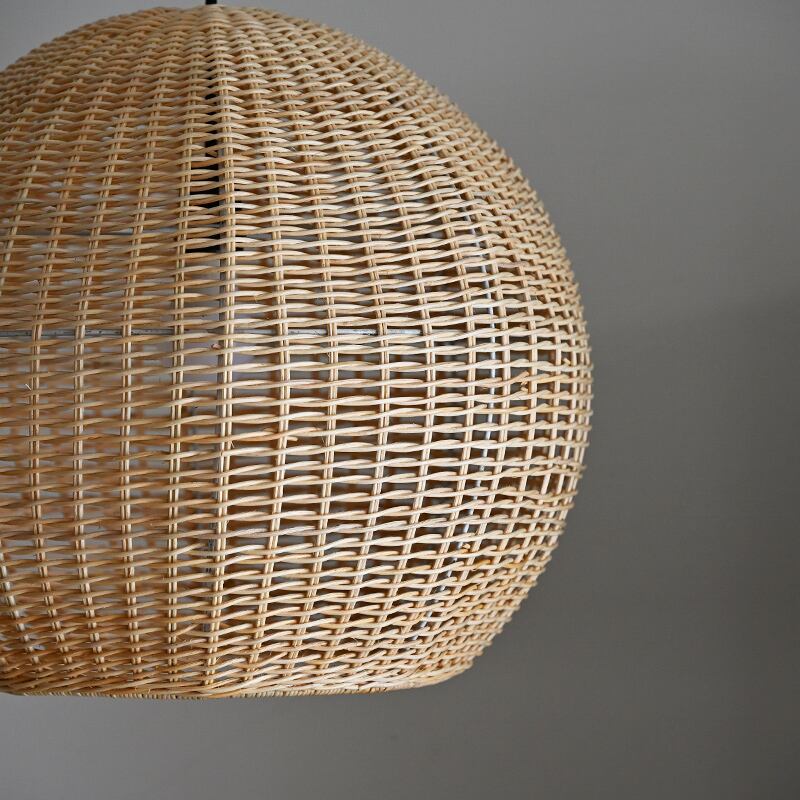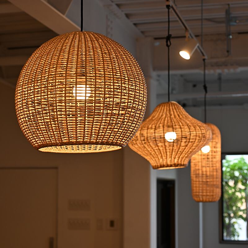 天然素材のラタンで作られたランプシェードは、編み目が通気性を確保し、光を柔らかく拡散させるため、優しい明かりを楽しむことができます。