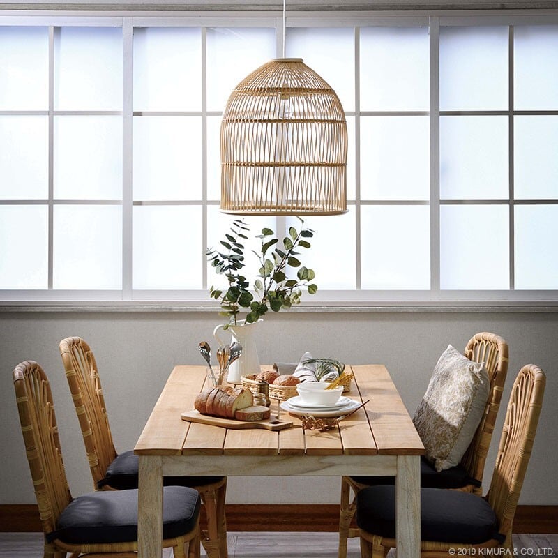 天然素材のラタンで作られたランプシェードは、編み目が通気性を確保し、光を柔らかく拡散させるため、優しい明かりを楽しむことができます。