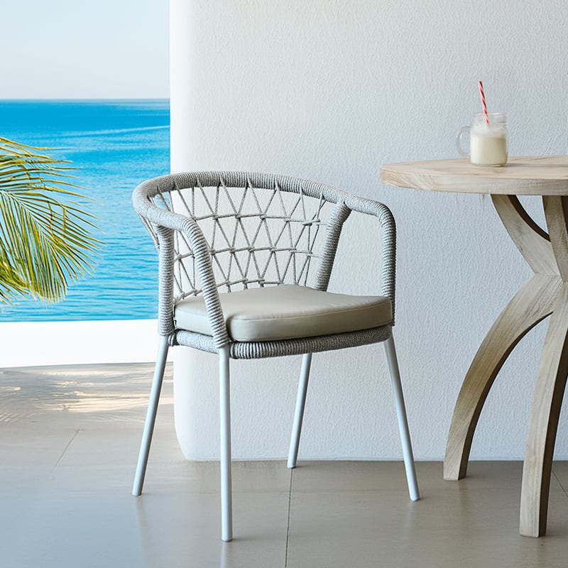 海辺のヴィラをイメージした、明るく開放的な屋外対応ダイニングチェア。