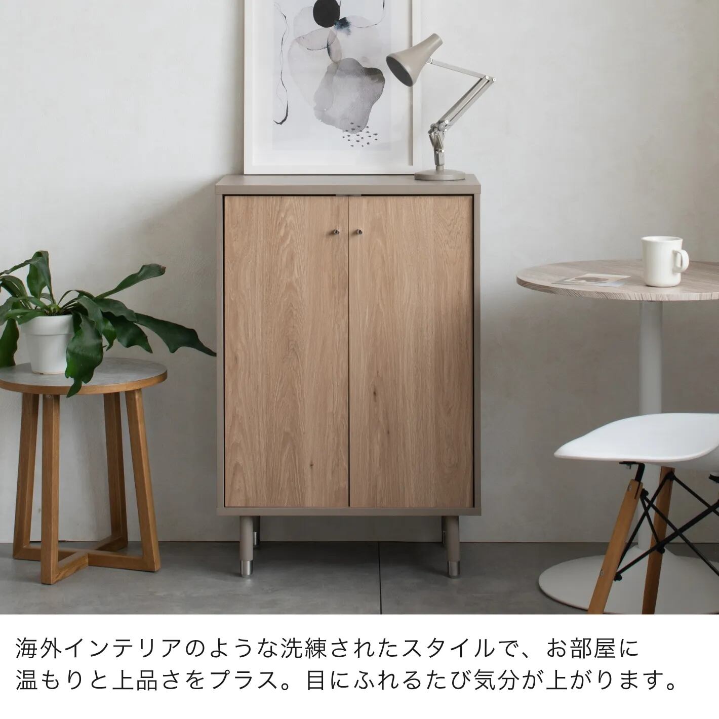 [幅60cm] 脚付きキャビネット 扉収納 可動棚×2+固定棚 奥行35cm 掃除ロボOK リビングボード サイドボード 玄関収納 グレージュ×ナチュラル 北欧風 おしゃれ シュランク