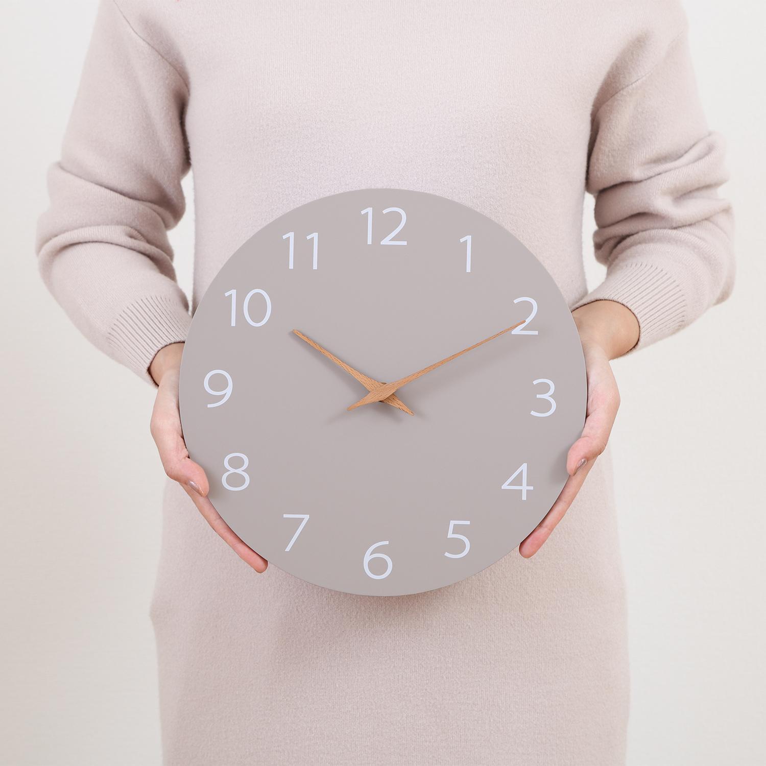 木製の針は素朴な優しさを演出。秒針がないのでスッキリして見え、視認性もばっちりです。