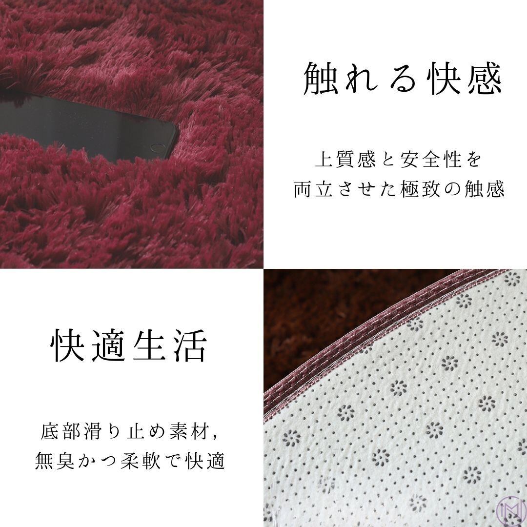 やわらかな肌触りと高級感あふれる北欧風シャギーラグ。素材は丈夫で色あせしにくいポリエステルを採用し、耐久性とお手入れのしやすさを両立しました。防汚加工と掃除機対応で日常のお手入れも簡単。円形デザインはリビングや寝室、ベッドサイドなど様々な空間にマッチします。複数サイズ・カラーバリエーションをご用意しているため、お部屋の雰囲気や用途に合わせてお選びいただけます。