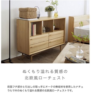 ナチュラルで木のぬくもり溢れる質感の北欧風ローチェストです。
