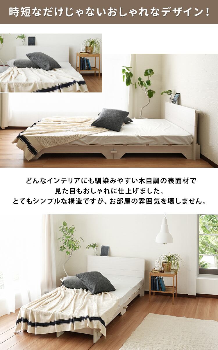 ネジも工具も必要ない組立て簡単なロータイプのすのこベッド
