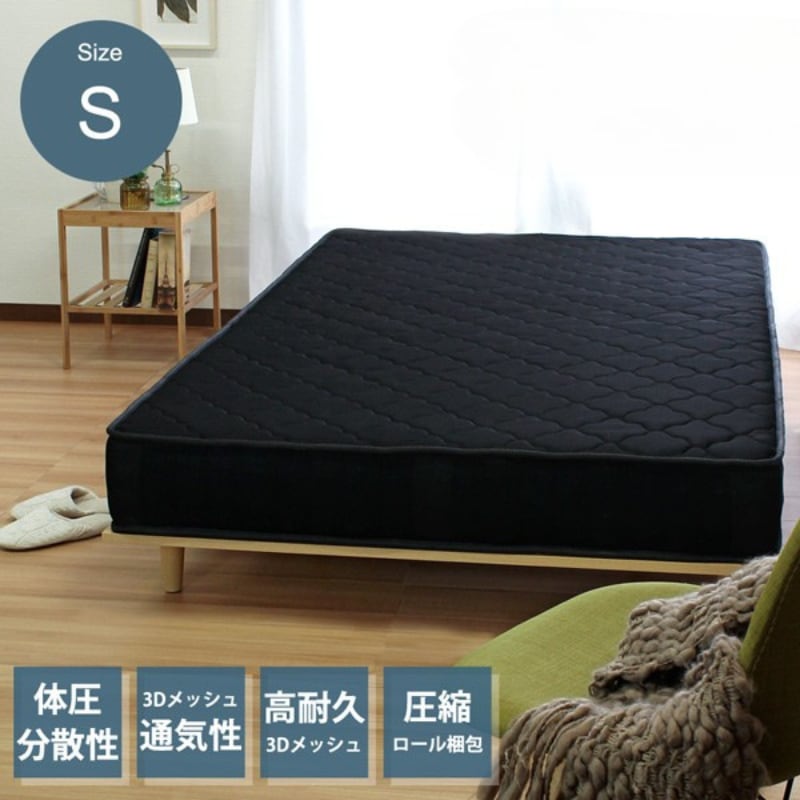 [S] 3Dメッシュ ポケットコイルマットレス ブラック mono モノ 1101