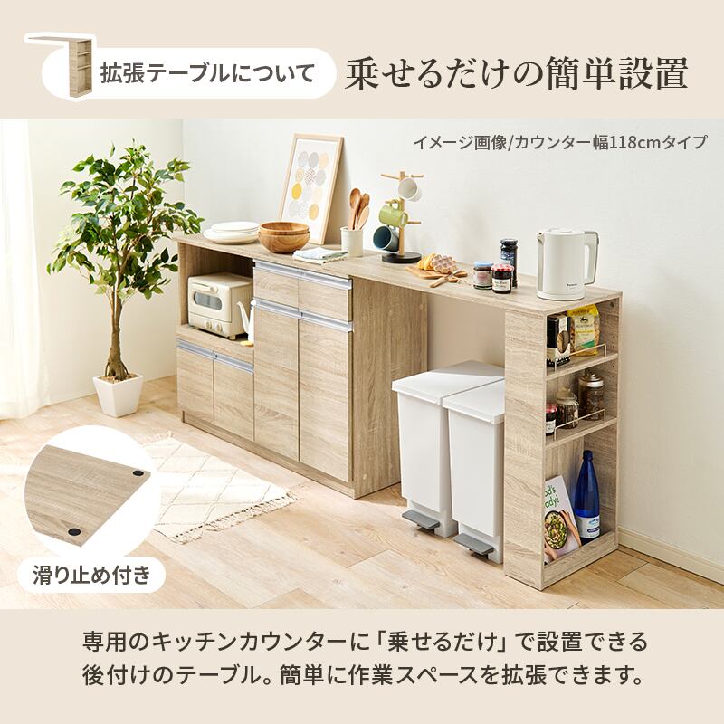 [幅104~178㎝] 伸縮キッチンカウンター 大容量収納 キャビネット 8601