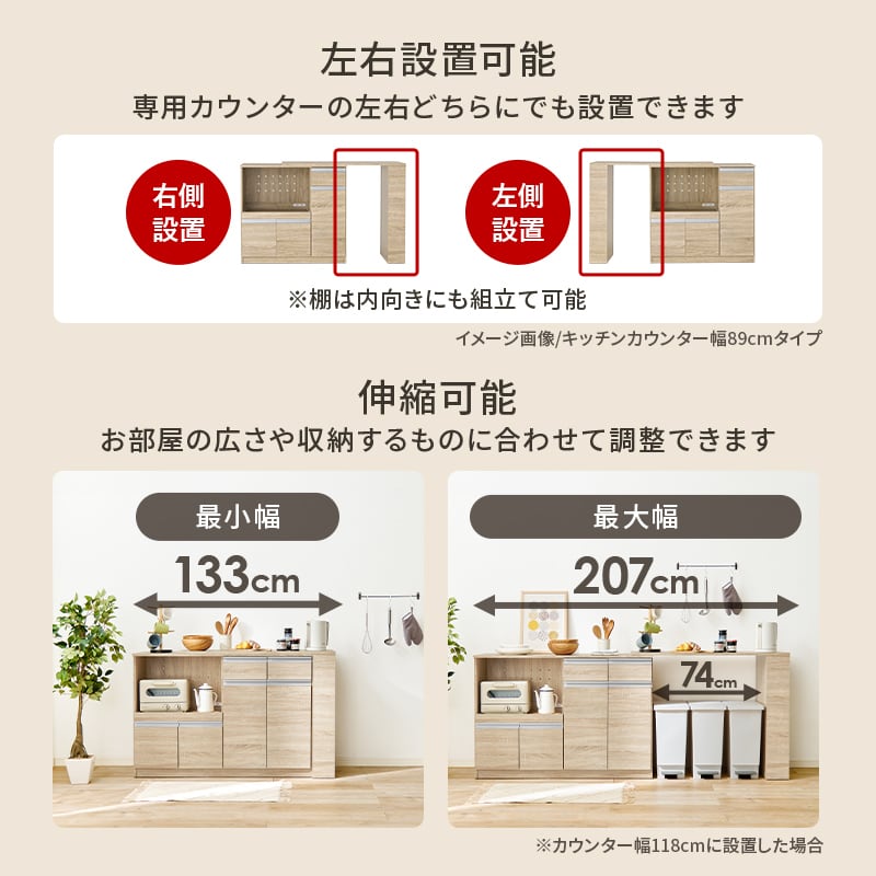 [幅133~207㎝] 伸縮キッチンカウンター 大容量収納 キャビネット 8601