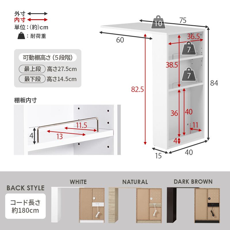 サイズ (約)幅75~125×奥行40×高さ84cm