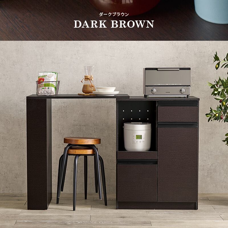 [幅75~125㎝] 伸縮キッチンカウンター 大容量収納 キャビネット 8601