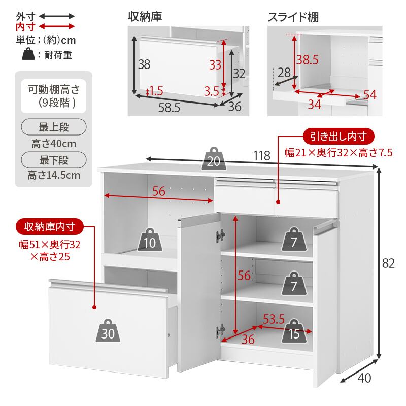 天板・スライド棚:合成樹脂化粧パーティクルボード(メラミン樹脂)、