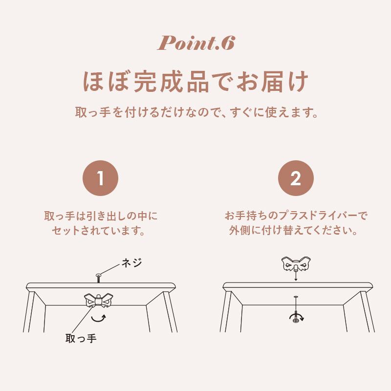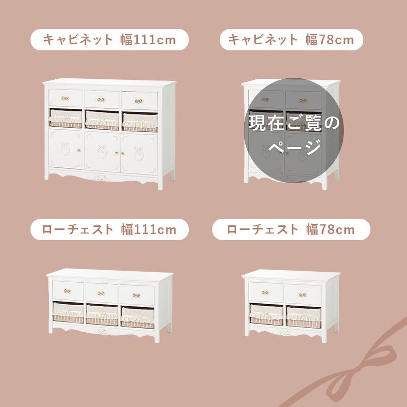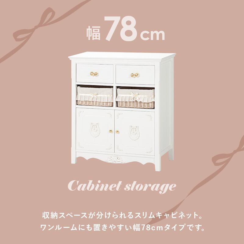 リボンの形の可愛い取っ手やフリル付きのバスケットなど収納力とこだわりデザインのキャビネット