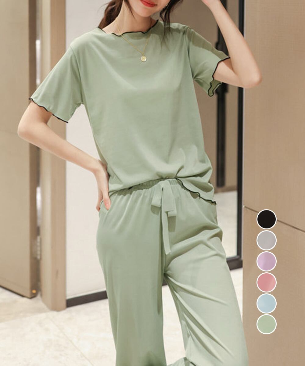 ![[パジャマセット] レディースルームウェア メロウフリル 半袖 薄手 寝間着 大人可愛い 部屋着 リボンナイトウェア 快適 冷感](https://baseec-img-mng.akamaized.net/images/item/origin/a3c0cf41295a52b643493f9c83bdde7f.jpg?imformat=generic)