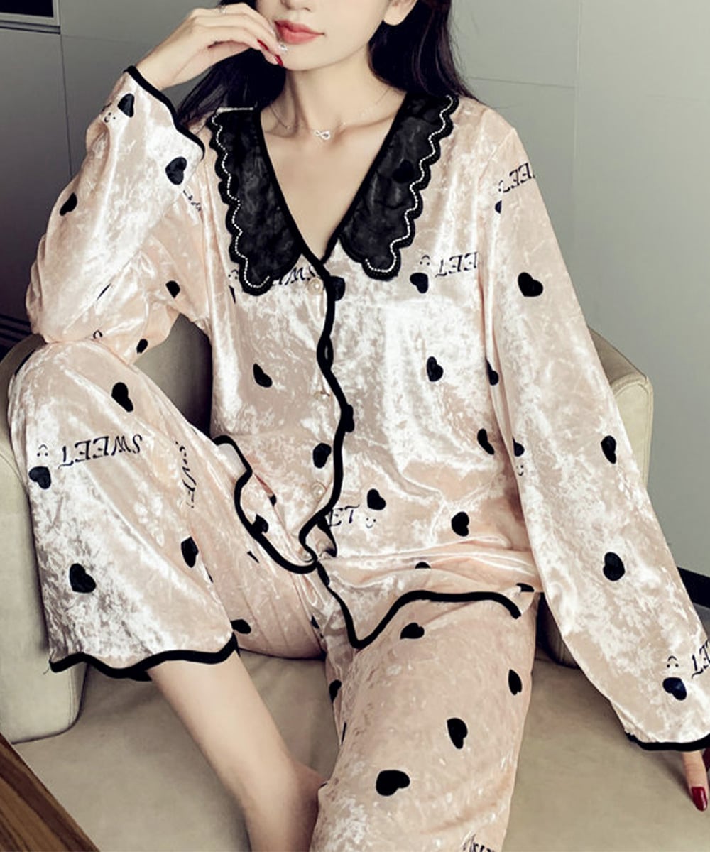 [セットアップ] ベロア調パジャマ レディース部屋着セット 韓国風ベルベット部屋着 長袖 エレガント 大人可愛い ラウンジウェア ゆったり体型カバー 光沢感