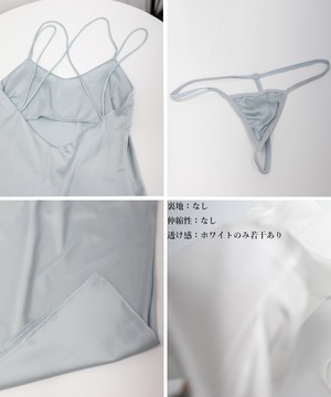 [2点セット] ルームウェア パジャマ キャミワンピース レディース 部屋着 光沢感 シルク風寝間着 無地 セットアップ 快適 セクシーフェミニン 大人 バック開き