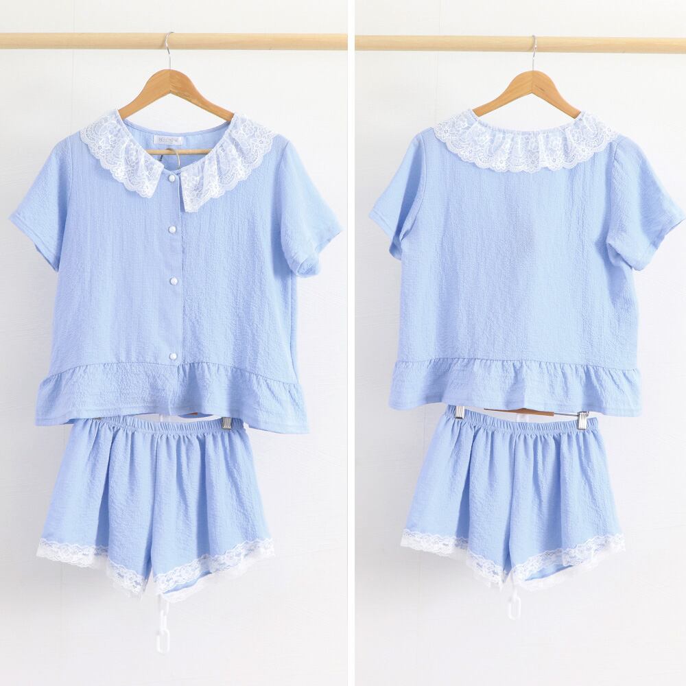 [セットアップ] 部屋着 半袖パジャマ レディース レース 可愛い ルームウェア おしゃれ リラックス ラウンジウェア ナイトウェア 韓国