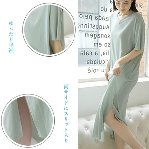 Tシャツワンピース ロングワンピ 涼しい 半袖ルームウェア 体型カバー レディース 夏パジャマ 薄手tシャツワンピ 快適部屋着 細めリブ スリット入り 肌触りいい
