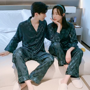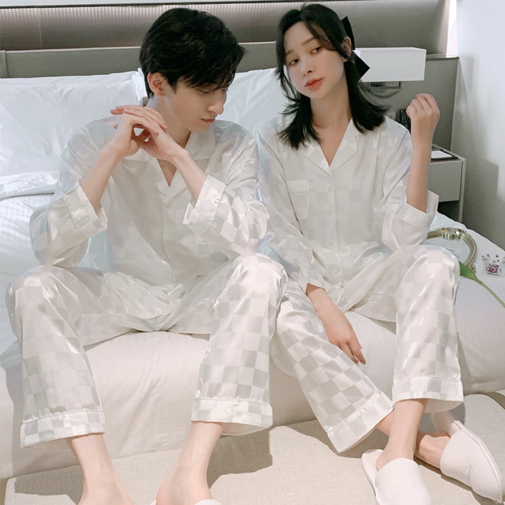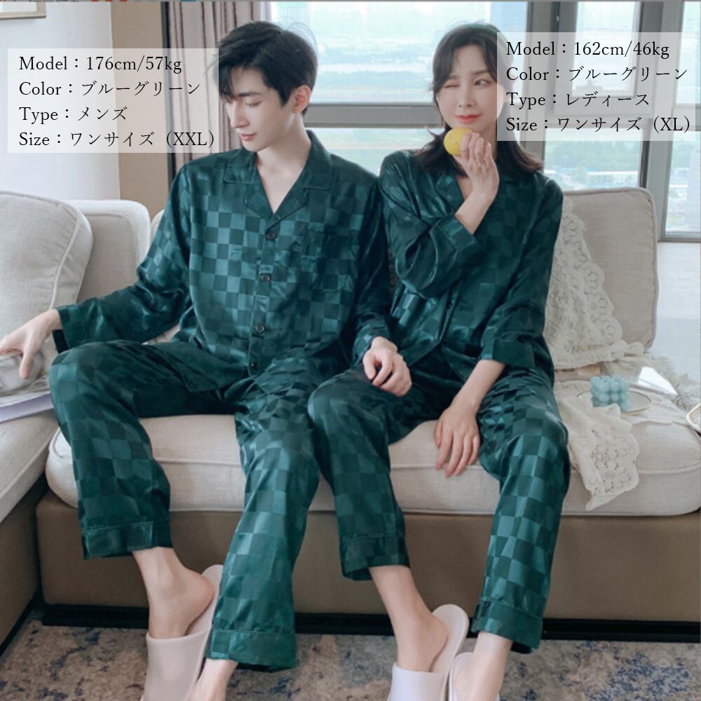 [セットアップ/ペアルック] ペアパジャマ ルームウェア 韓国風 長袖 部屋着 カップル 夫婦 お揃い パジャマ シルクタッチ ゆったり 男女兼用 パジャマ ナイトウェア