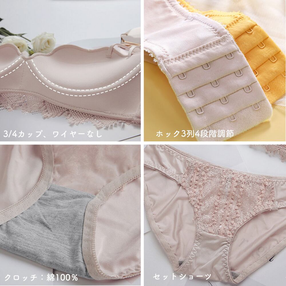 ![[ブラ&ショーツセット] セクシーランジェリーセット ノンワイヤー 可愛い レース刺しゅう ブラジャー ショーツ 上下セット 小胸盛れる美胸 韓国 おしゃれ 谷間ブラ 脇スッキリ下着セット ワイヤレスインナー ブラショーツセット 勝負下着 お泊り](https://baseec-img-mng.akamaized.net/images/item/origin/c49186345c67542591a67d7c860591d7.jpg?imformat=generic)