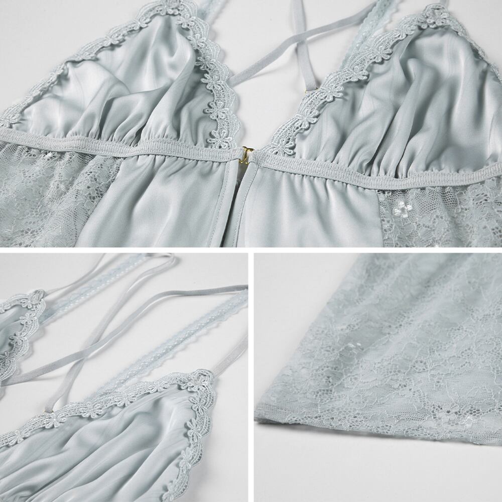 [ブラ&ショーツセット] セクシーランジェリーパット付き パジャマ レース キャミナイトドレス エロい下着 背中あき シアーコスチューム 肌透け部屋着 寝巻き ルームウェア 過激ネグリジェ 大人 コスプレ衣装 女性 エッチな下着 体型カバーエロ下着
