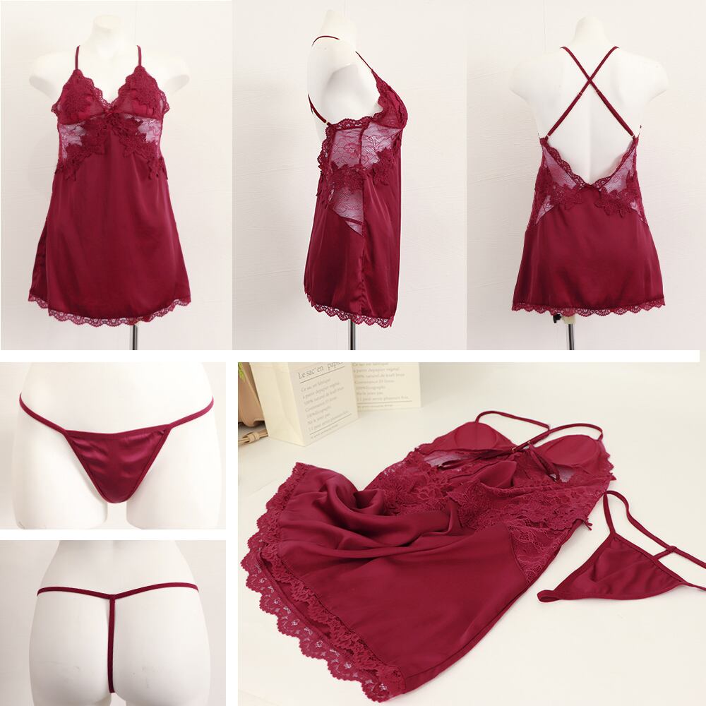 [ブラ&ショーツセット] セクシー ランジェリー Tバック セット レース キャミワンピ風 ベビードール 背中あき エロい下着 ルームウェア ナイトウェアコスチューム ネグリジェ コスプレ 過激 大人勝負下着 体型カバーエロ下着 女性 エッチな下着