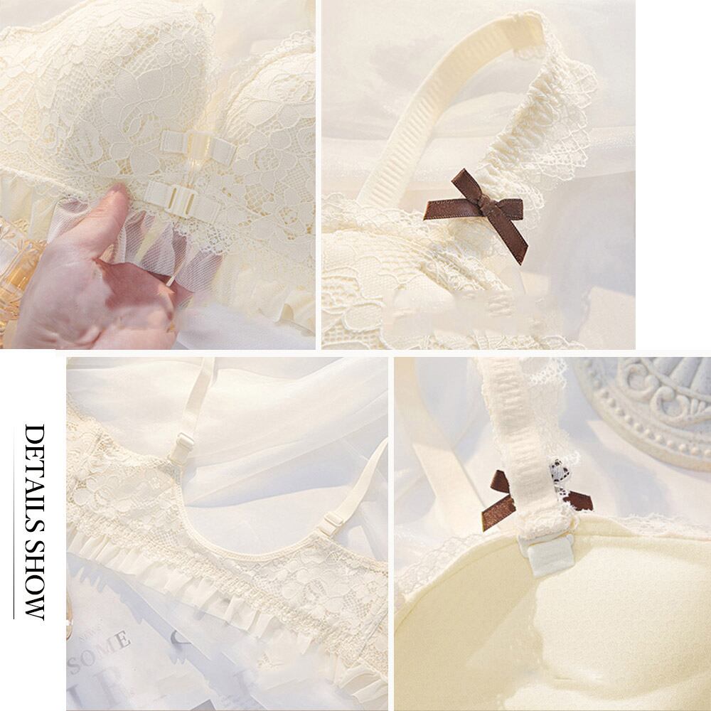 [ブラ&ショーツセット] フロントホック下着セット レディースブラ 花柄刺しゅうレースランジェリーセット 肩リボン 胸元セクシー ブラジャー ショーツフェミニン 大人美胸 盛りブラ フリル 2点セットかわいい 3/4カップブラ 脇スッキリインナー