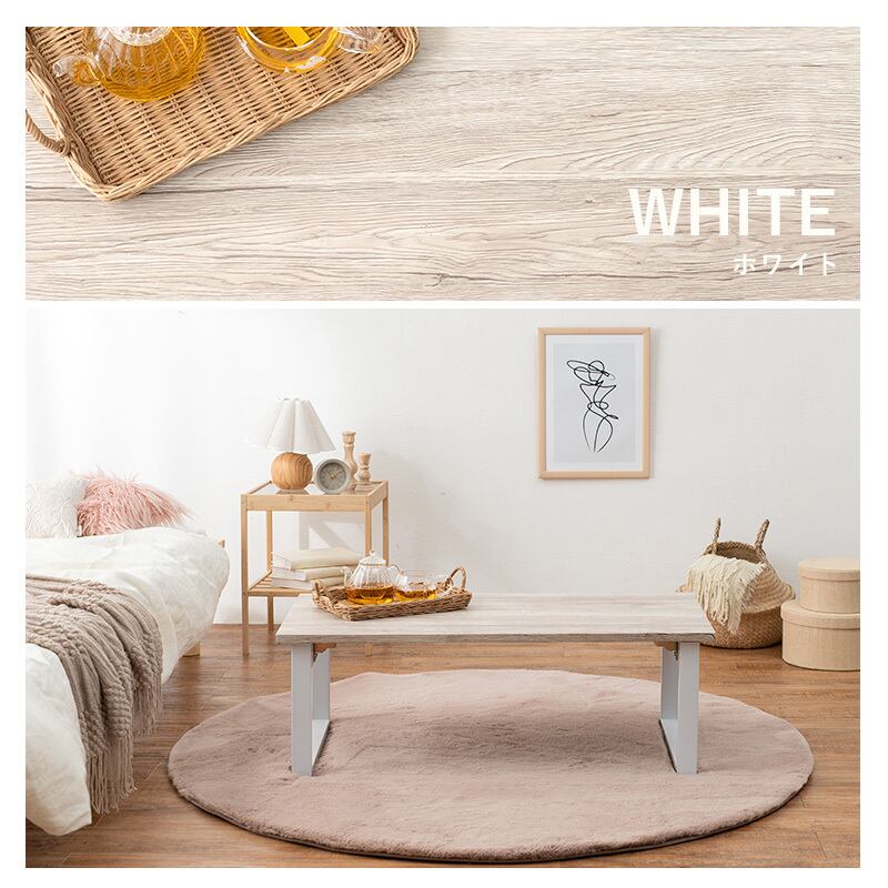 天然木の素材感を再現したセンターテーブル。隙間に収納しやすい折りたたみ式