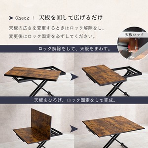 ヴィンテージ調のテーブルはロータープからダイニング、デスクタイプまで高さを無段階調節可能です。