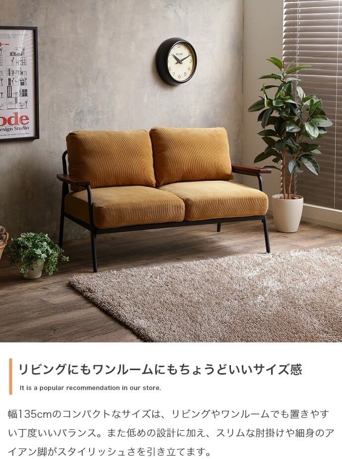 【幅135cm】2人掛けコーデュロイソファ アイアン 天然木 2704