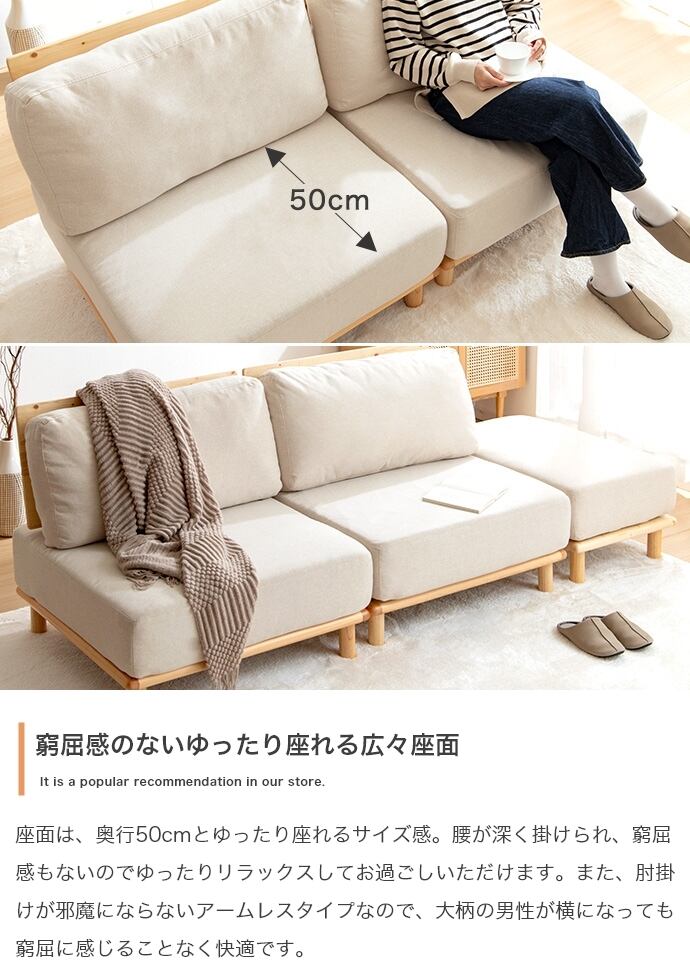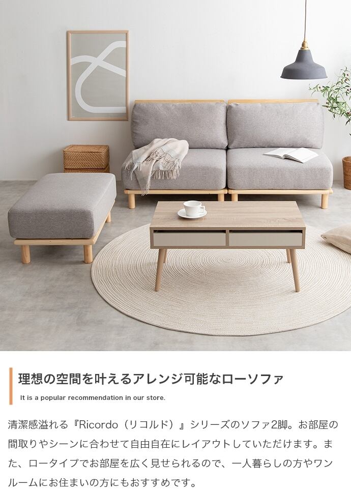 2人でゆったりくつろぐことができるローソファです。座面幅、奥行きがゆったりと作られているので深く座ることができ、座面が低いので太もも裏への圧迫感がなくとっても座りやすいです。
