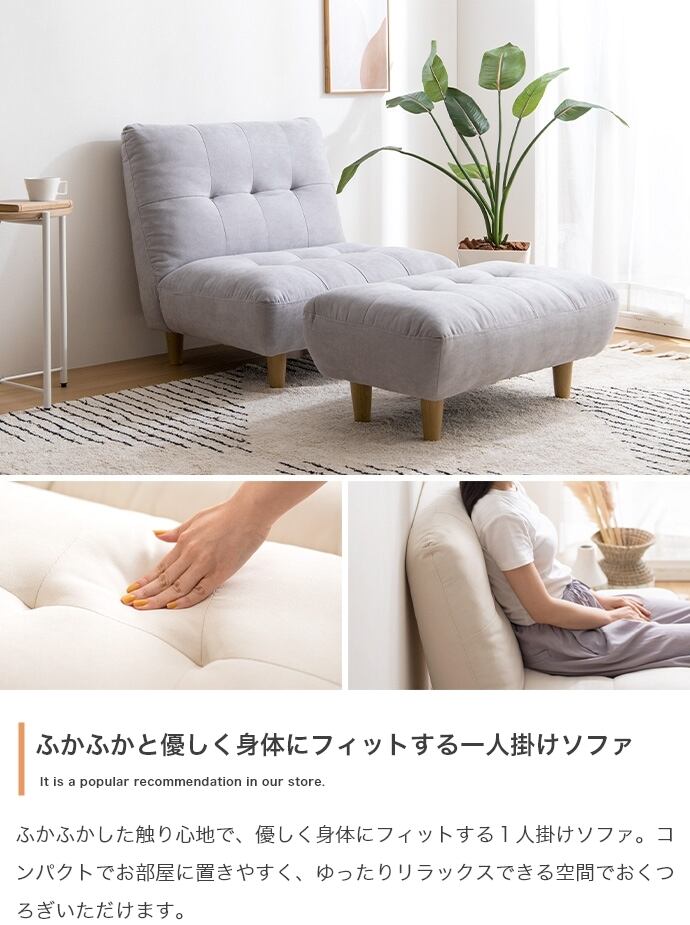 ふわふわもっちり感が可愛い『Moln(モルン)』のオットマン付き一人掛けソファ。快適な座り心地のくつろぎ空間を独り占めしてご利用いただけます。また、クッション性・触り心地にこだわっているため、極上の座り心地でおくつろぎいただけます。オットマンも付属しており、伸ばした足を乗せるスペース・ちょっとしたものを置いておくサイドスペース・来客用の座席としてもご利用可能な優れものです。